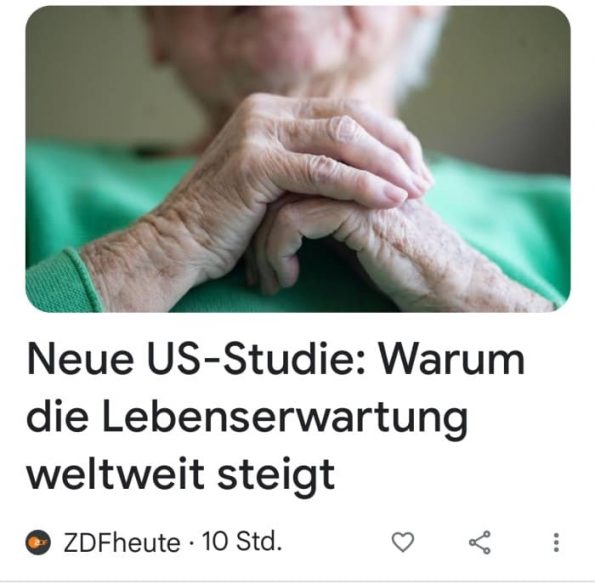 Konträr dazu die Headline des Zweiten Deutschen Fernsehens. Neue US-Studie – Warum die Lebenserwartung weltweit steigt.
