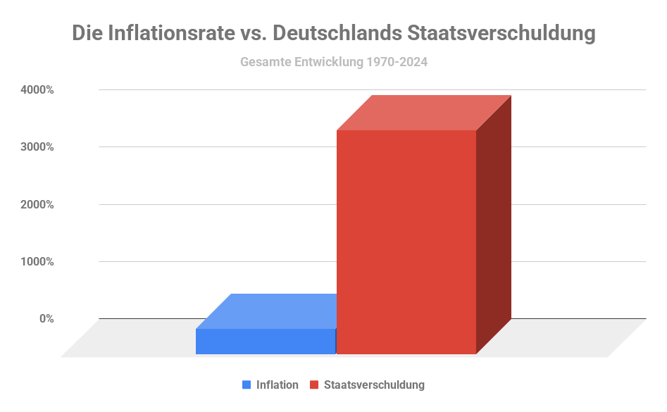 Wie entwickelte sich die Staatsverschuldung Deutschlands im Vergleich zur gesamten Inflation? Nun, hier ist der Chart:
