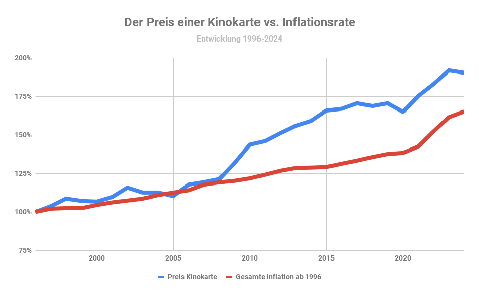 Was stieg schneller? Die allgemeine Inflationsrate? Oder die Preisentwicklung der Kinokarte? (1996-2024)
