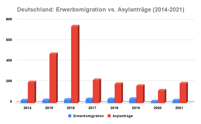 Politiker erklären immer wieder, das alternde Deutschland braucht Erwerbsmigration. Doch wie sieht die in Relation zu Asylanträgen aus?