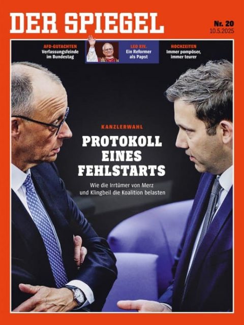 Das aktuelle Spiegel-Titelbild zeigt eine Fotografie von Lars Klingbeil und Friedrich Merz, vermutlich direkt beim Krisengespräch kurz nach der gescheiterten ersten Abstimmung.