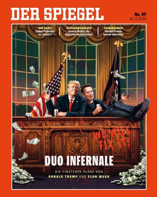Das aktuelle SPIEGEL Titelbild zeigt Trump mal wieder mit Eppstein-Bezug. Der Eppstein-Club lautet der Titel. Und neben Trump & Eppstein sieht man Bill Gates, Woody Allen, Prinz Andrew, irgendeine norwegische Adlige. Wen man erstaunlicherweise nicht sieht ist Elon Musk, obwohl der allem Anschein nach auch gerne bei „wilden Partys“ mitfeierte.