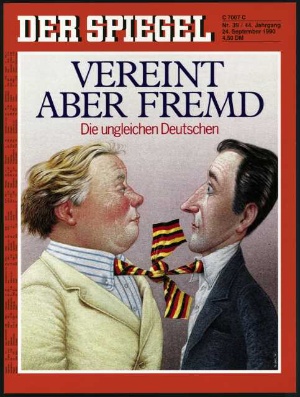 Frisch nach der Vereinigung stehen sich Ost und West noch Auge in Auge gegenüber.