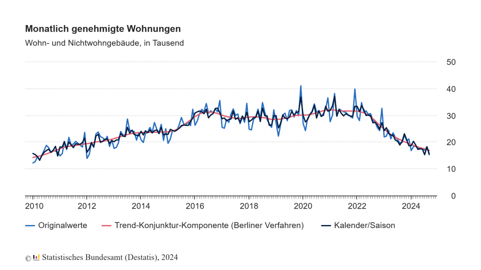 Trauriger Chart: Die monatlichen Baugenehmigungen