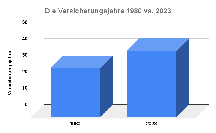 Die Menschen gingen 1980 nach knapp 30 Versicherungsjahren in Rente. (Genau 29,8 Jahre) Inzwischen ist mehr als ein Jahrzehnt hinzugekommen. (Da landen wir inzwischen bei 40,3 Jahren)